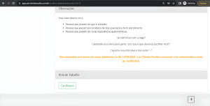 - Depois de ler todas as especificações da vaga em questão, basta rolar até o fim da página e se candidatar;